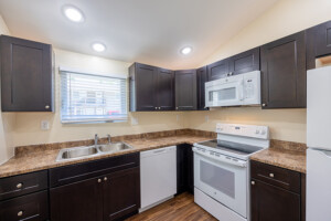 Renovation in progress, new open kitchen layout, appliances include glass top stove, built In microwave ovens, energy star refrigerator and In the wall AC units. All units are equipped with rear patios or second story balconies, new enlarged bathrooms with one piece fiberglass shower stalls, 30″ vanities with drawers, high efficiency elongated toilets, ceramic tile. Konecto wood laminate type flooring in entry and kitchen areas, with plush frizzie carpet in living room and bedrooms. Six panel doors though out, large closets, ceiling fans in both living room and bedrooms. Units have all been rewired with new coax cable to allow access to all Comcast services (satellite dishes are not allowed on the property). Common areas include Private Coin Laundry with locking mailboxes located in new laundry room, common area grill gazebo with gas grill. Lighted off street parking with Security Cameras located around the building.